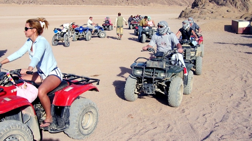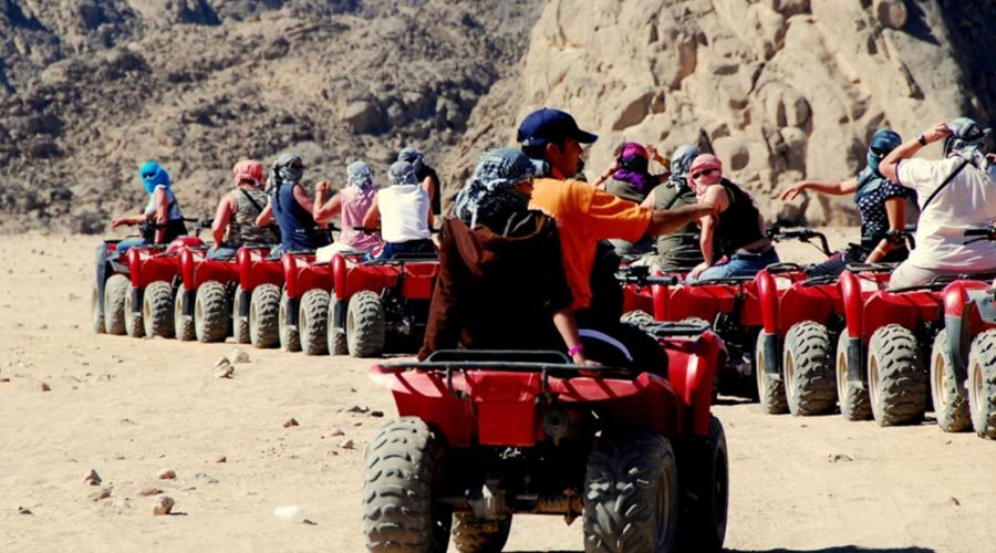 In this tour, you will explore the beauty of the Bedouin life and touch the beautiful desert of Sinai on a quad bike from Sharm el-Sheikh and enjoy playing on the dunes. Additionally, you will meet up with Bedouins who will treat you to a camel ride and enjoy dinner with the traditional show, belly dancing and fireworks between the mountains of Sinai